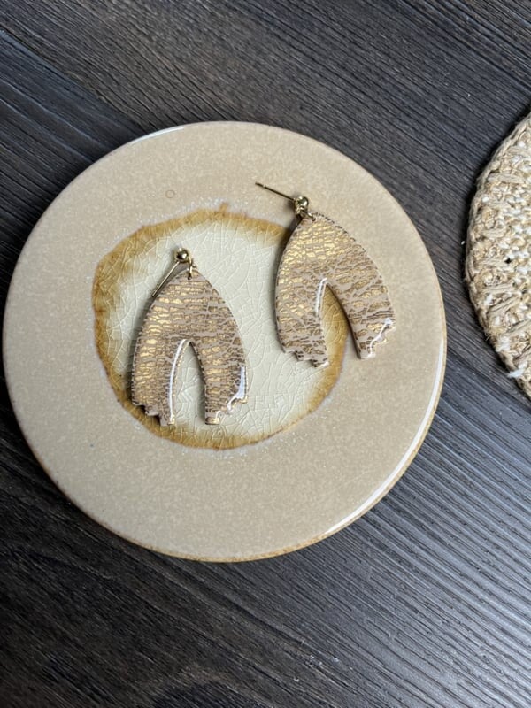 Mooie grote hanger in een Sahara kleur met goud of zilver touch.Deze hanger is afgemaakt met een glanzende laag.