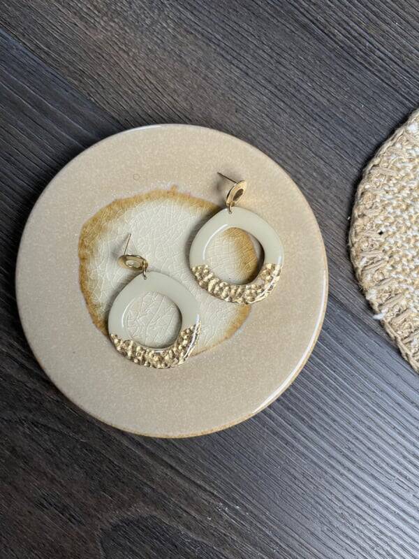Mooie grote ronde hanger in een Sahara kleur met goud of zilver touch.Deze hanger is afgemaakt met een glanzende laag.