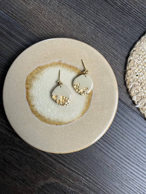 Mooie organische ronde hanger in een Sahara kleur met goud of zilver touch.Deze hanger is afgemaakt met een glanzende laag.