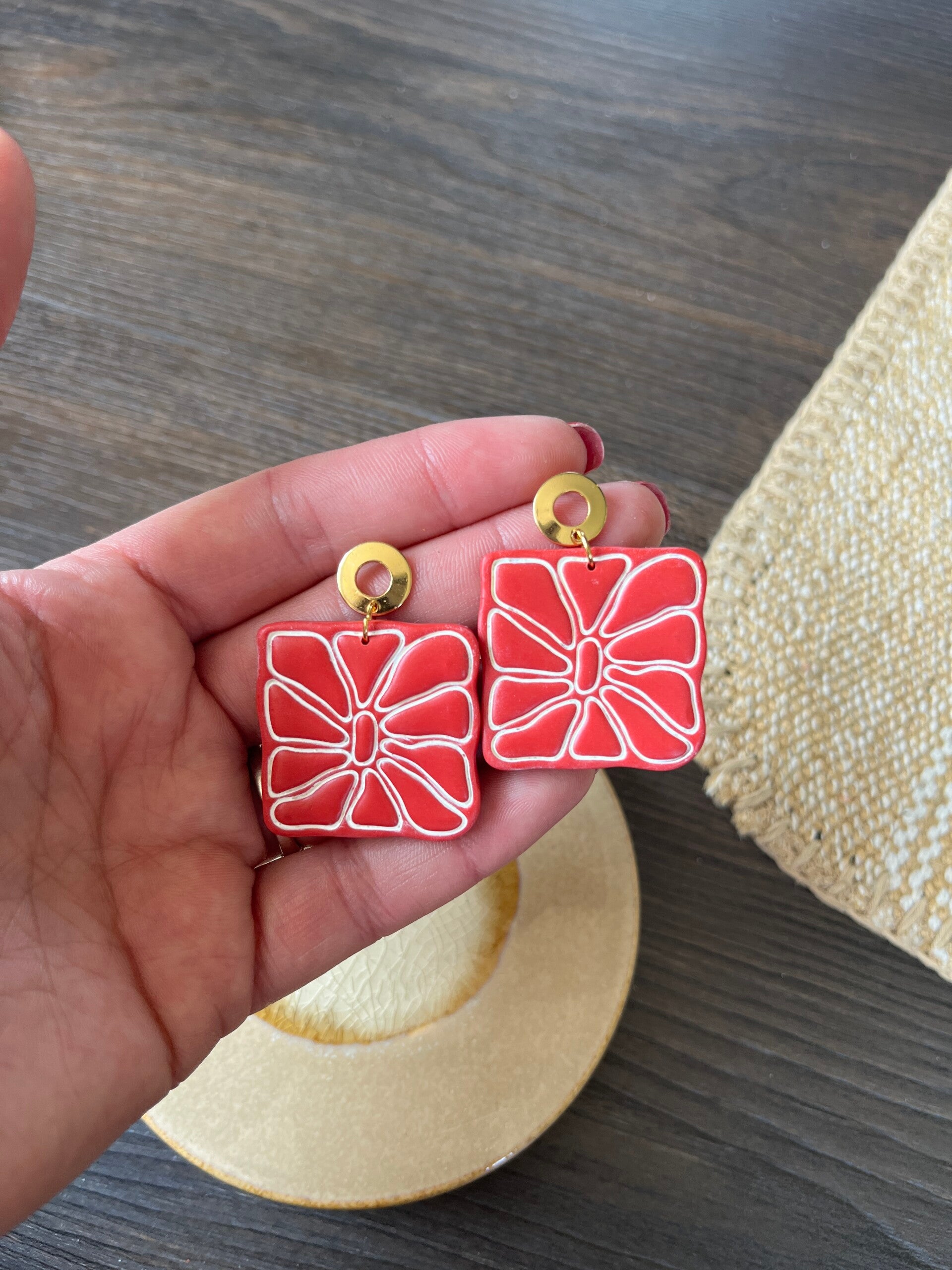 Leuke vierkante hanger in een zacht rood oranje kleur van de collectie " Sunset"