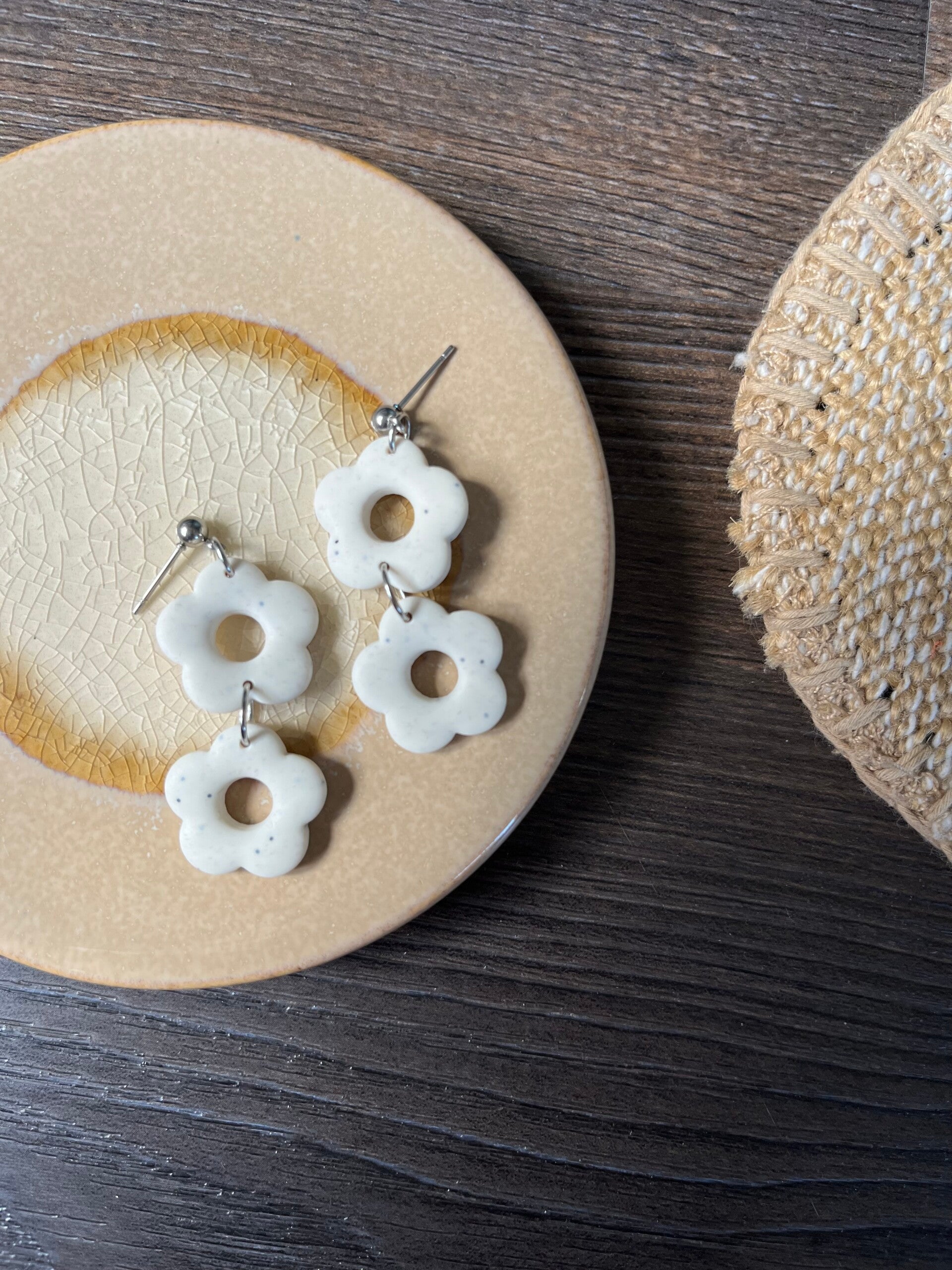 Dubbele bloem hanger in een witte steen look, leuke neutrale kleur voor bij elke outfit.