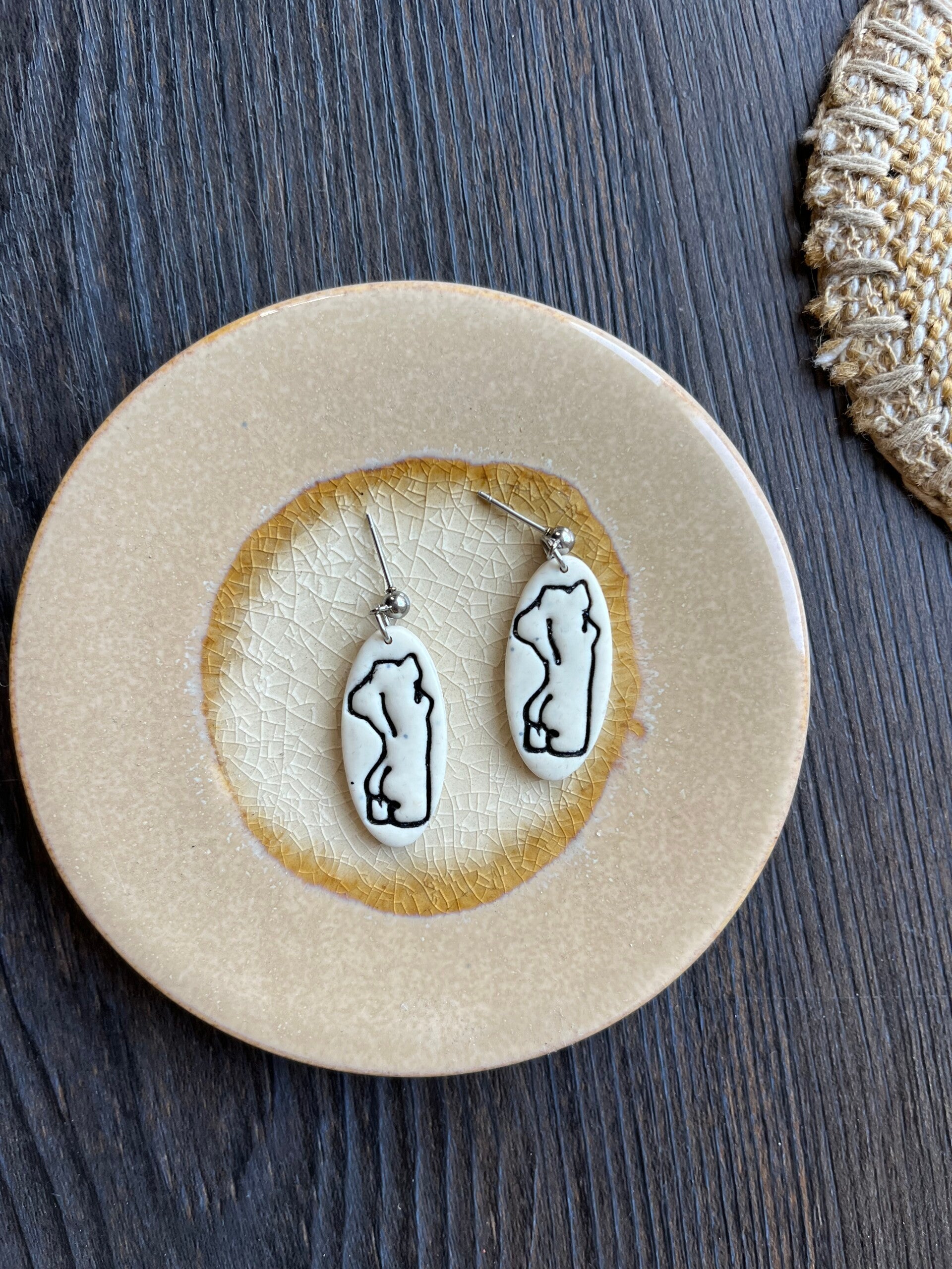 Wit stenen look oorbellen met een lichaam indruk.Bevestigd aan een stekertje van rvs.