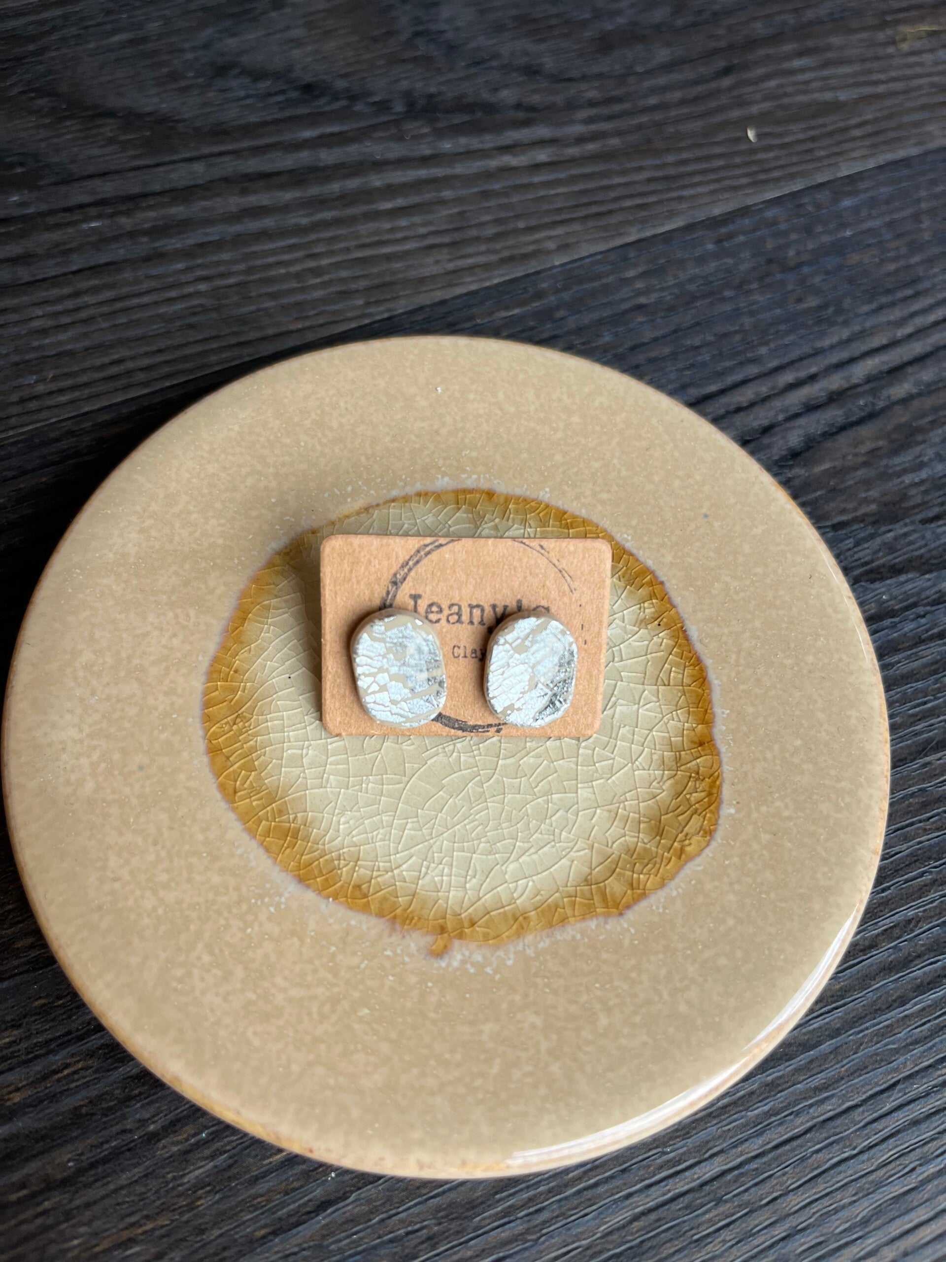 Mooie ovalen stud in de kleuren combinatie Sahara en zilver. De stud is afgemaakt met een glans laag.